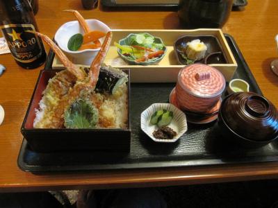 しかしながら季節柄、雑炊は取り扱っておらず、少々遠慮しながら、かに天重、寿司盛合せ、かにセイロのご飯物が選べる「華御膳」を選択し、私も「かに天重」を指定して右になれ。
