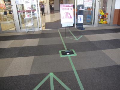 店内出入口は、入口と出口がビニールテープで仕切られ、店員さんが買物カートを一生懸命に布で拭かれていて、コロナ対策で仕事が増えて大変だろうなと感じました。