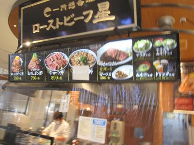 イオン名古屋茶屋3階のフードコートで、昼食の店舗選びをする祭、何時も気になっていたメピラミットの様に盛られたローストビーフ丼を食べてみることにしました。