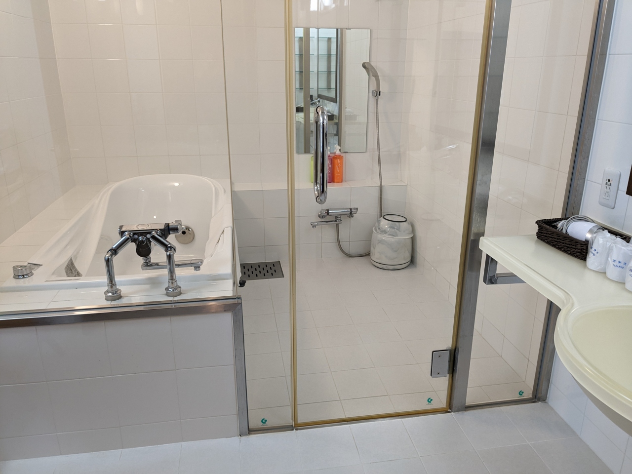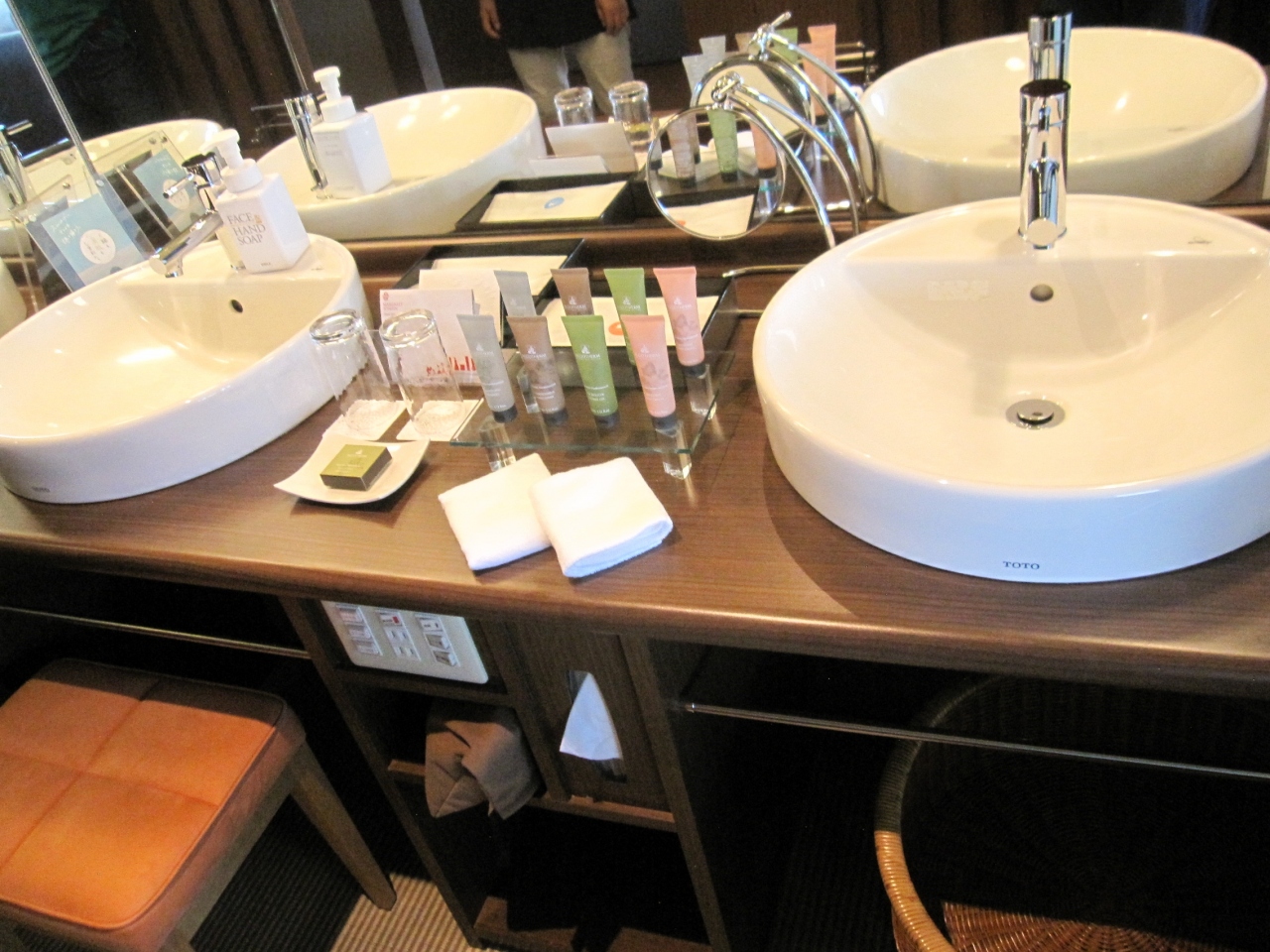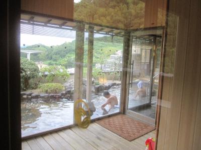 部屋はお洒落なデザインで、アメニティも充実していて、一番驚くおどいたのは、部屋風呂がガラス張りになっていて、風呂に入りながら和室のテレビが見られ、電動カーテンで目隠しできるようになっていました。