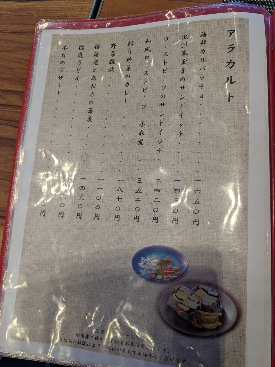 店内は、2~30名程で満席となる狭さで、メニューに目を通すと楽しみにしていたアサリ料理が一切ありませんでした。