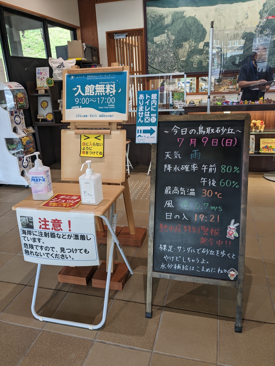 鳥取砂丘観光の足がかりにビジターセンターに立ち寄り、マップなどの情報を得ました。