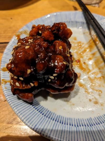鶏料理の「旨辛ヤンニョムチキン」は、とても美味しくてボリームがありました。- 旅行時期