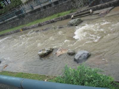 橋にある立て看板には、「この勾玉は日本一大きい」と書いてあり、橋の近くの玉湯川の中には、勾玉島や足湯もある様でしたが、訪れた日は、濁流で勾玉島は見つからず、玉湯川の足湯も断念しました。- 旅行時期