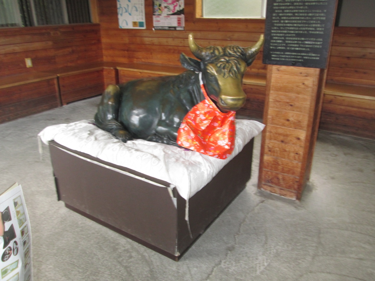 この化身の牛の銅像に触れると御利益があると聞いて境内を探したところ、駒返り橋前の善光寺観光案内所内に皆に触れられてかテカテカの角の牛の銅像を発見し、角を撫でて来ました。