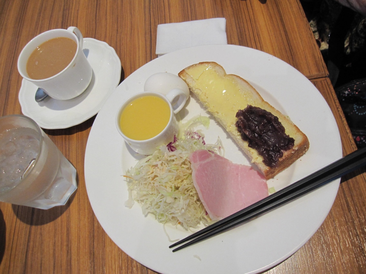 トーストはフワフワで柔らかく美味しかったのですが、妻は「あずきが薄めてある」等とブツブツ言っていました。- 旅行時期