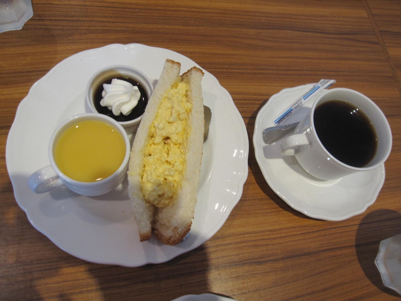 私は、アイスコーヒーとエッグトーストにしましたが、甘い物好きの妻はホットコーヒーとあずきトーストにしました。