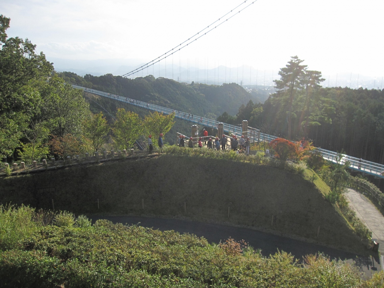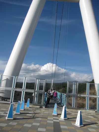 伊豆縦貫自動車道三島塚原インター近くに架かっており、正式には「箱根西麓・三島大吊橋」というそうで、売りは「日本一高い富士山と日本一深い駿河湾を日本最長の大吊橋から眺める」という観光地。