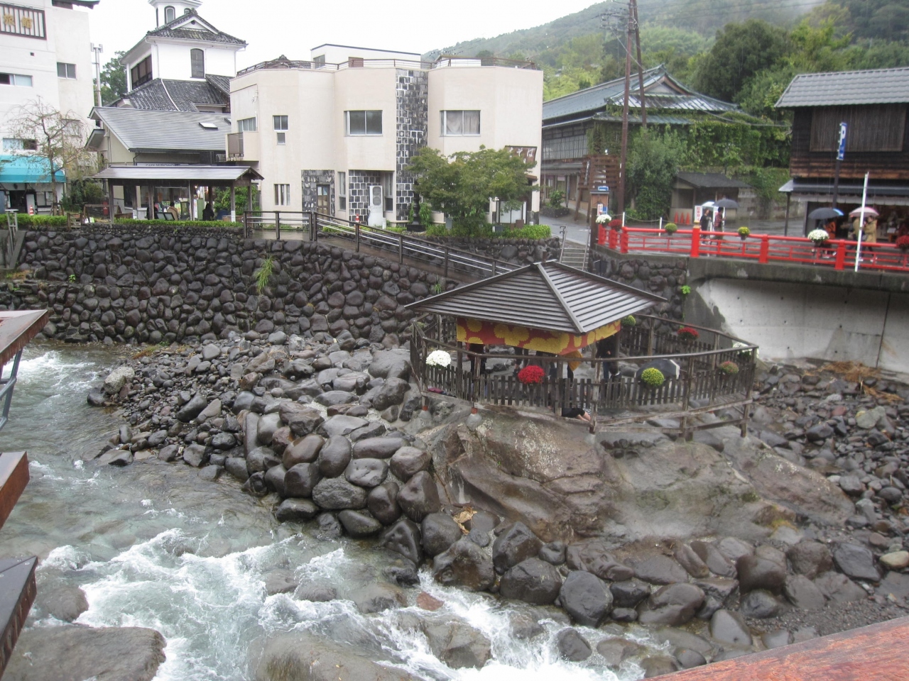 まずは温泉街の中心にある、空海にまつわる伝説が残される伊豆七不思議の1つ「独鈷の湯」です。