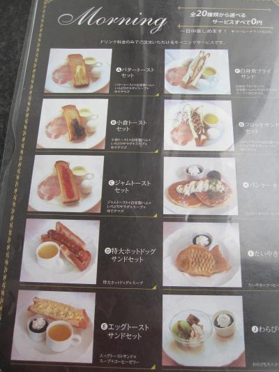 モーニングサービスは20種類もあり、今回は小倉トーストにサラダとゆで卵、スープが付いたセットを頂いて来ました。- 旅行時期