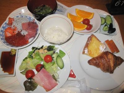 夕食は、和食・洋食・中華のバイキング、朝食も品数豊富なバイキングでした。
