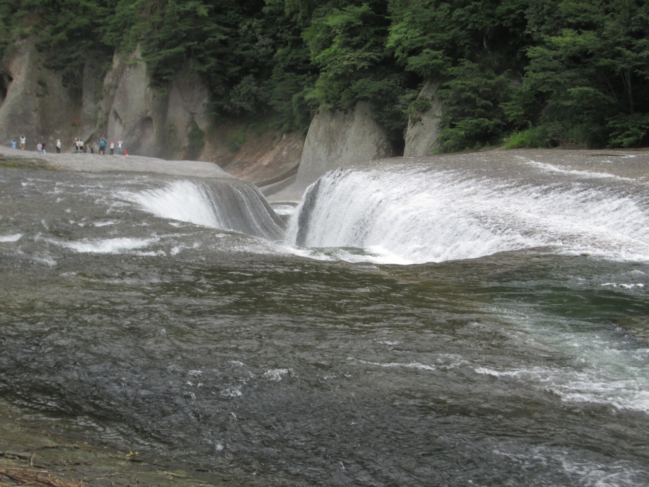 それが吹割の滝で、大な岩が吹き割れたように見えるところから、その名が付いたとのことで、滝近くまで来たところロープで規制され、当日は水量が多くて直近での見学は出来ませんでした。- 旅行時期