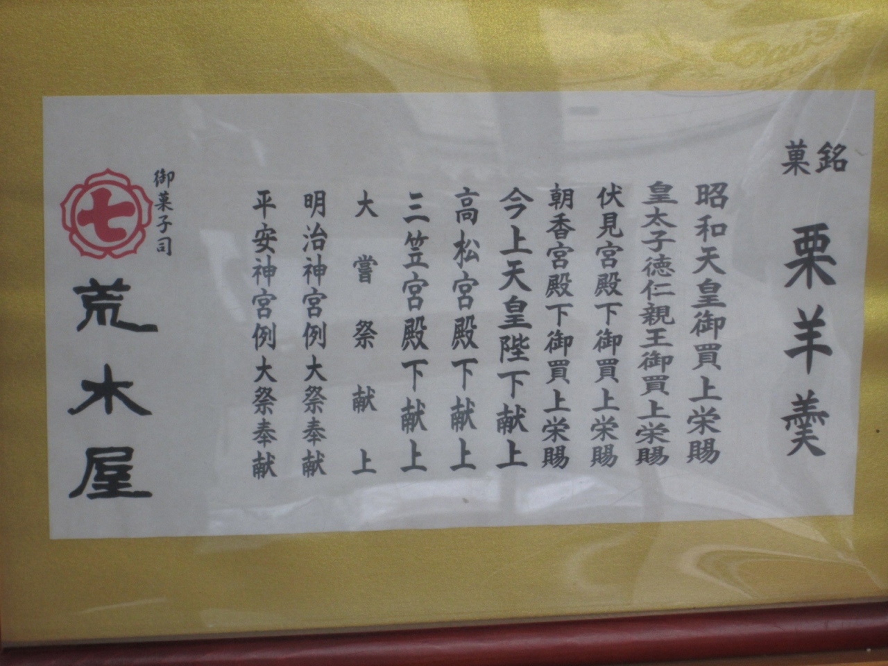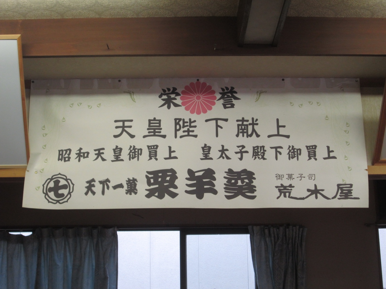 店内には、天皇陛下への献上を自慢する表示があり、平成天皇、令和天皇の三代に亘ってお召し上がり頂いたとか。