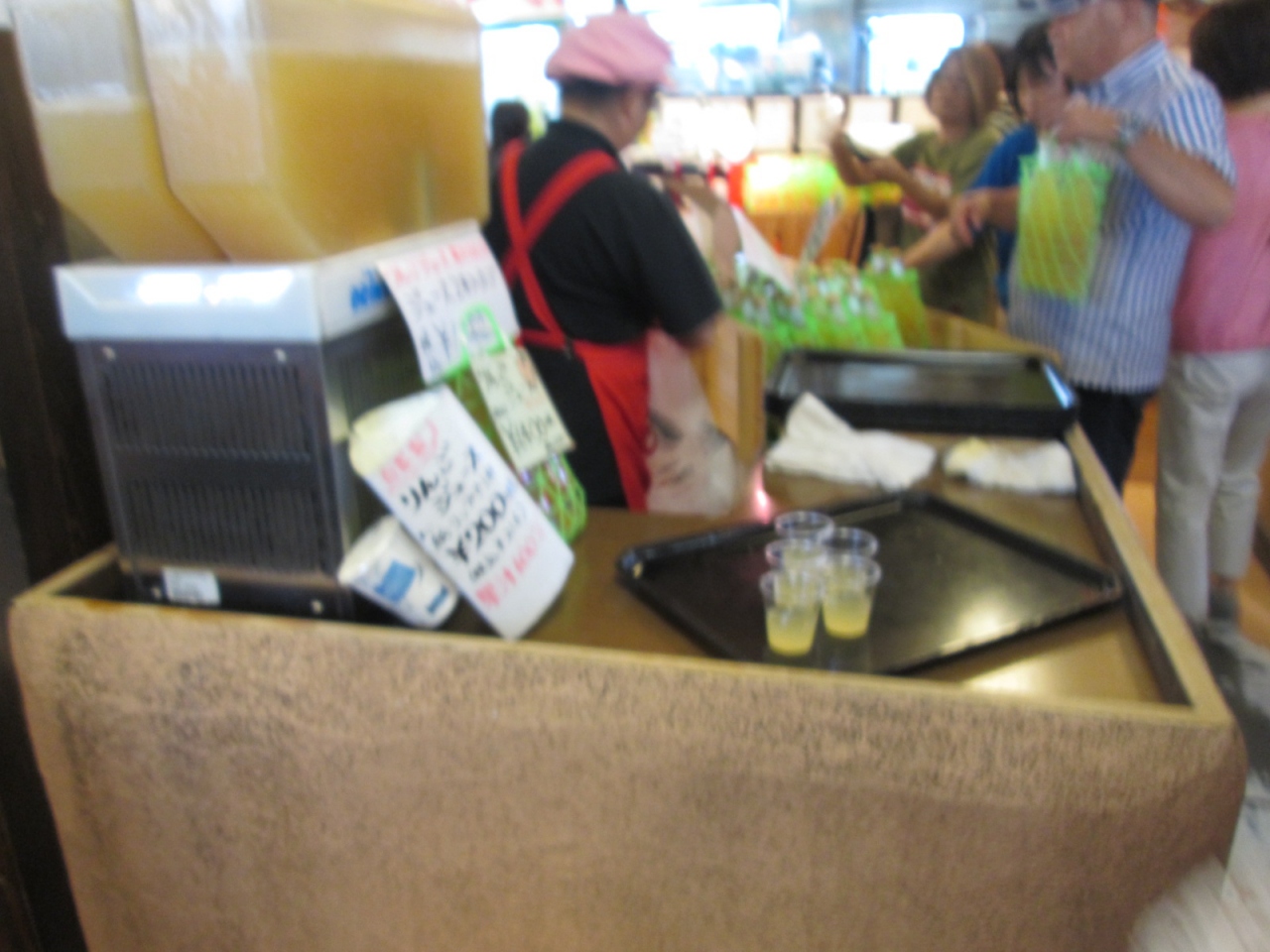 私も食べてみたかったのですが、その日は日差しが強く暑かったので、私はビール、妻はジュースを飲みながらの散策中。