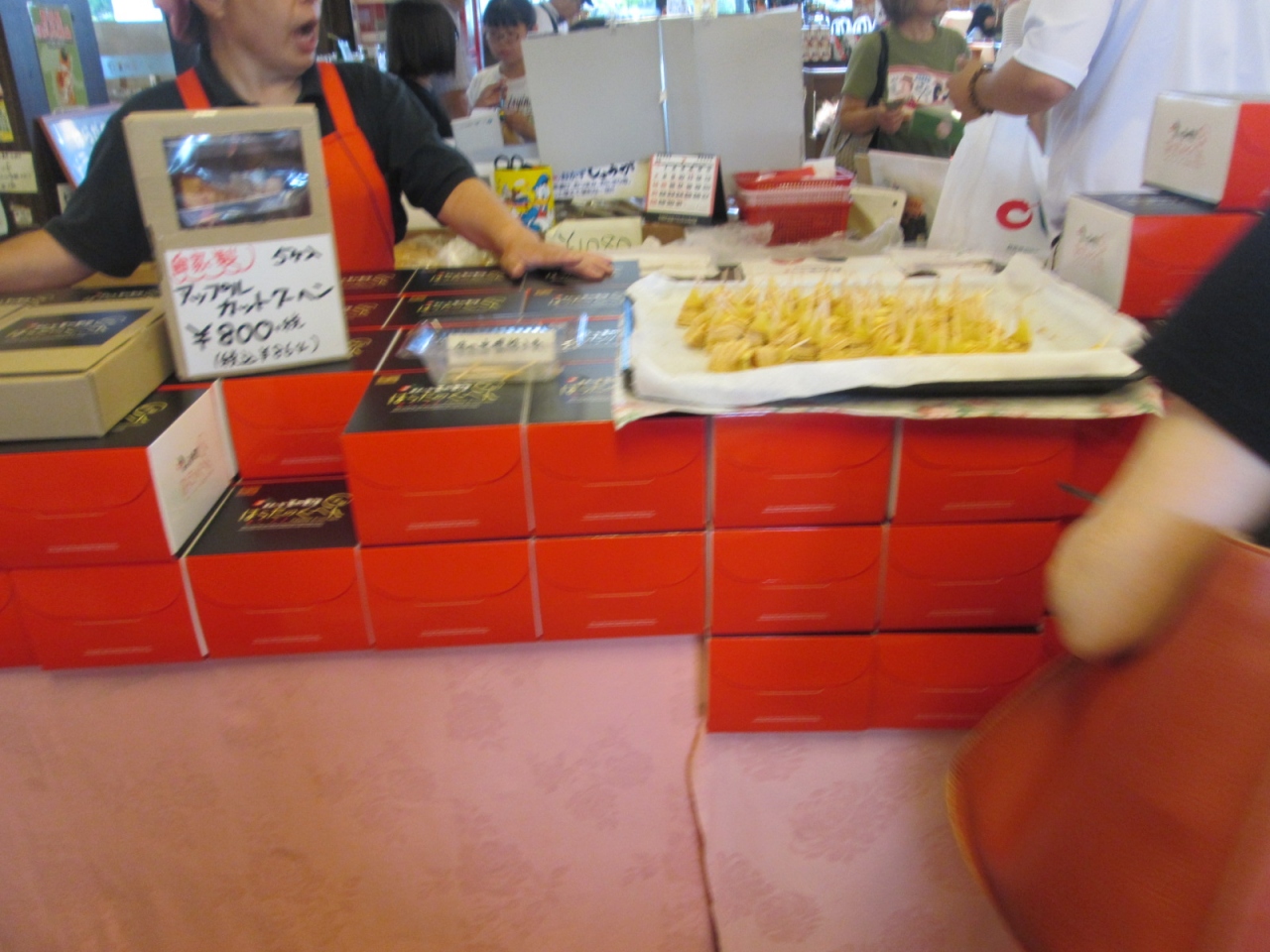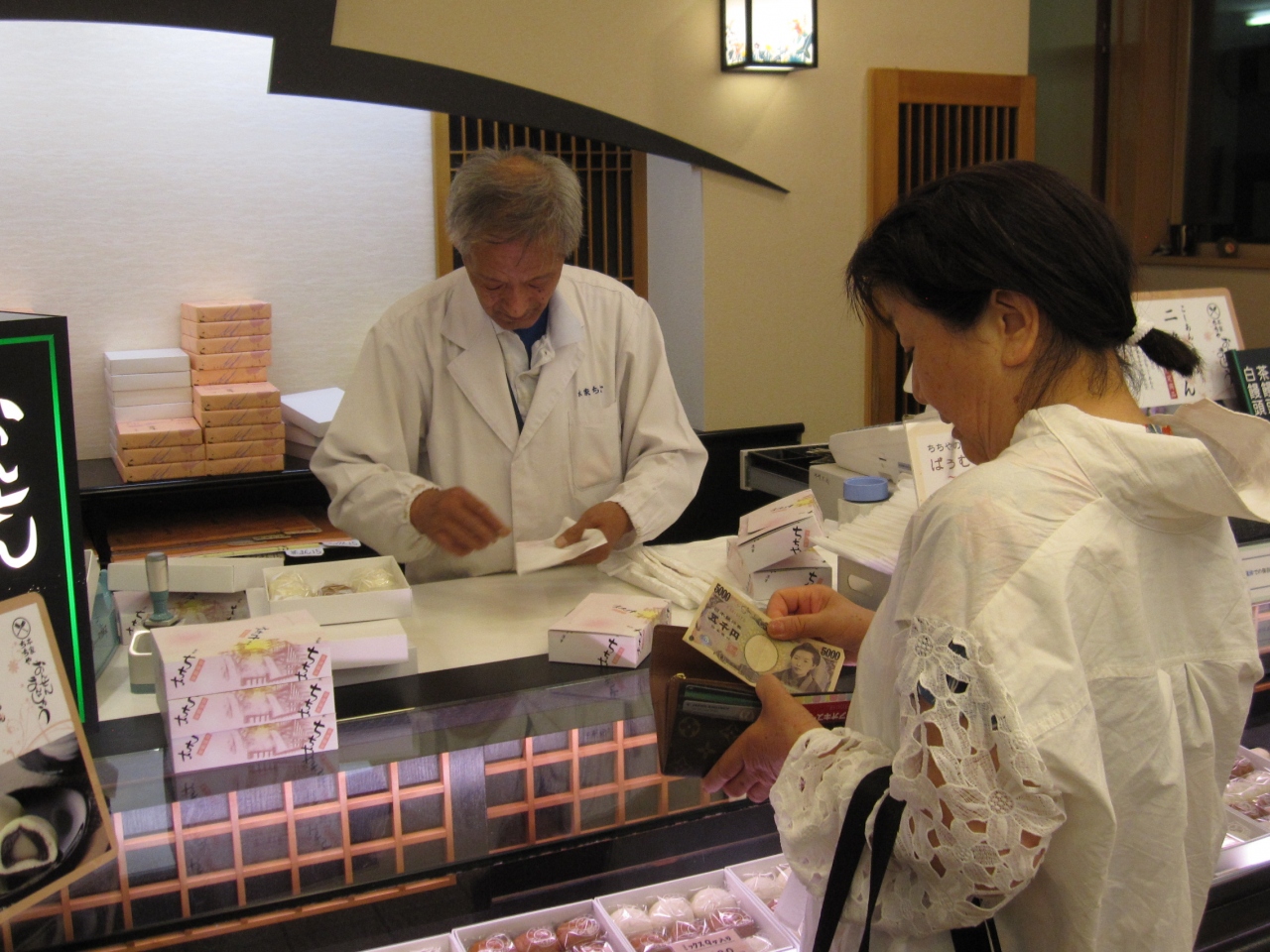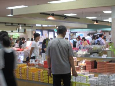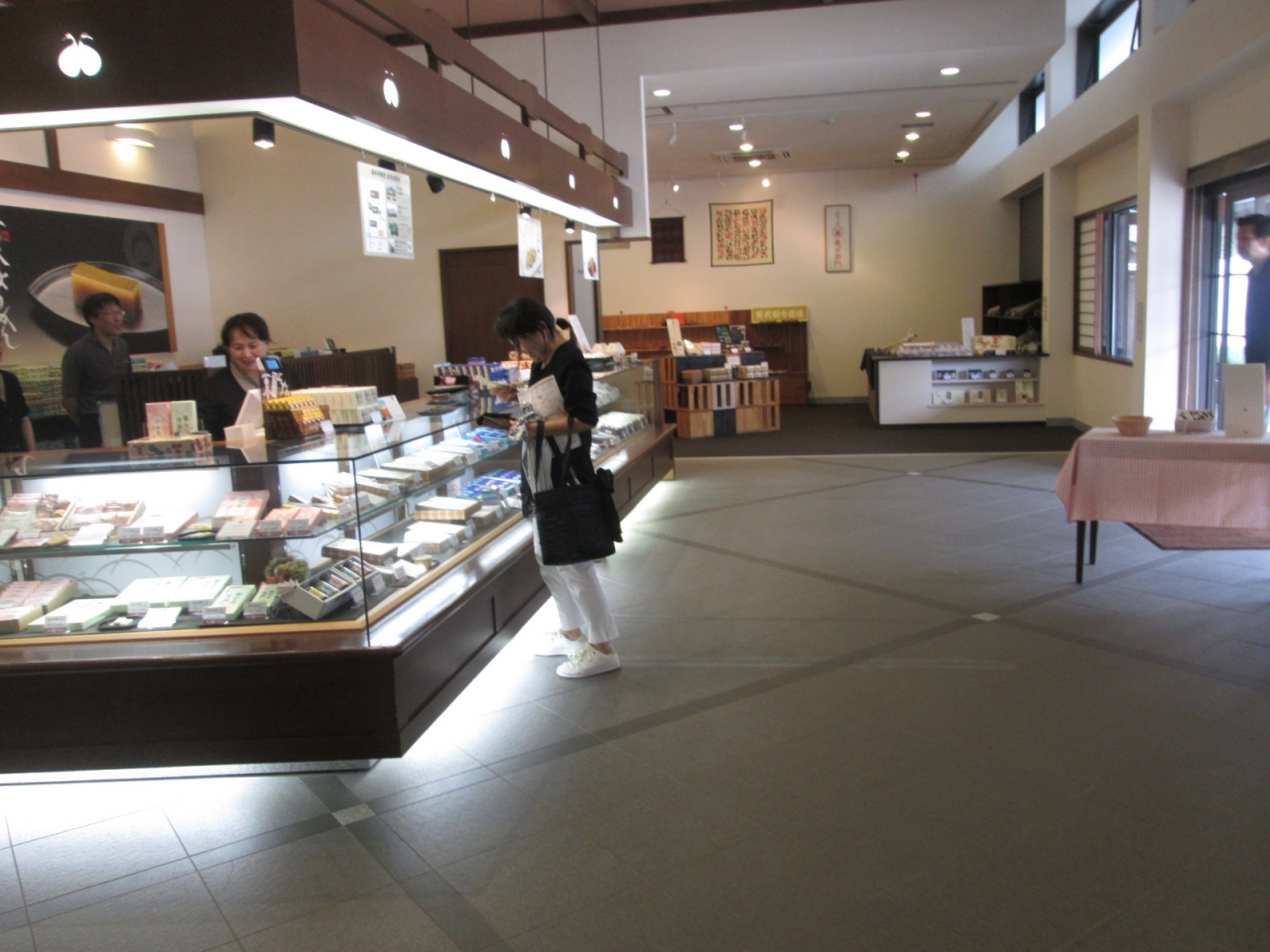 どうも2階で栗おこわの京料理の昼食を済ませたお客さんが、どっと1階でお土産品を買い求めているようでした。