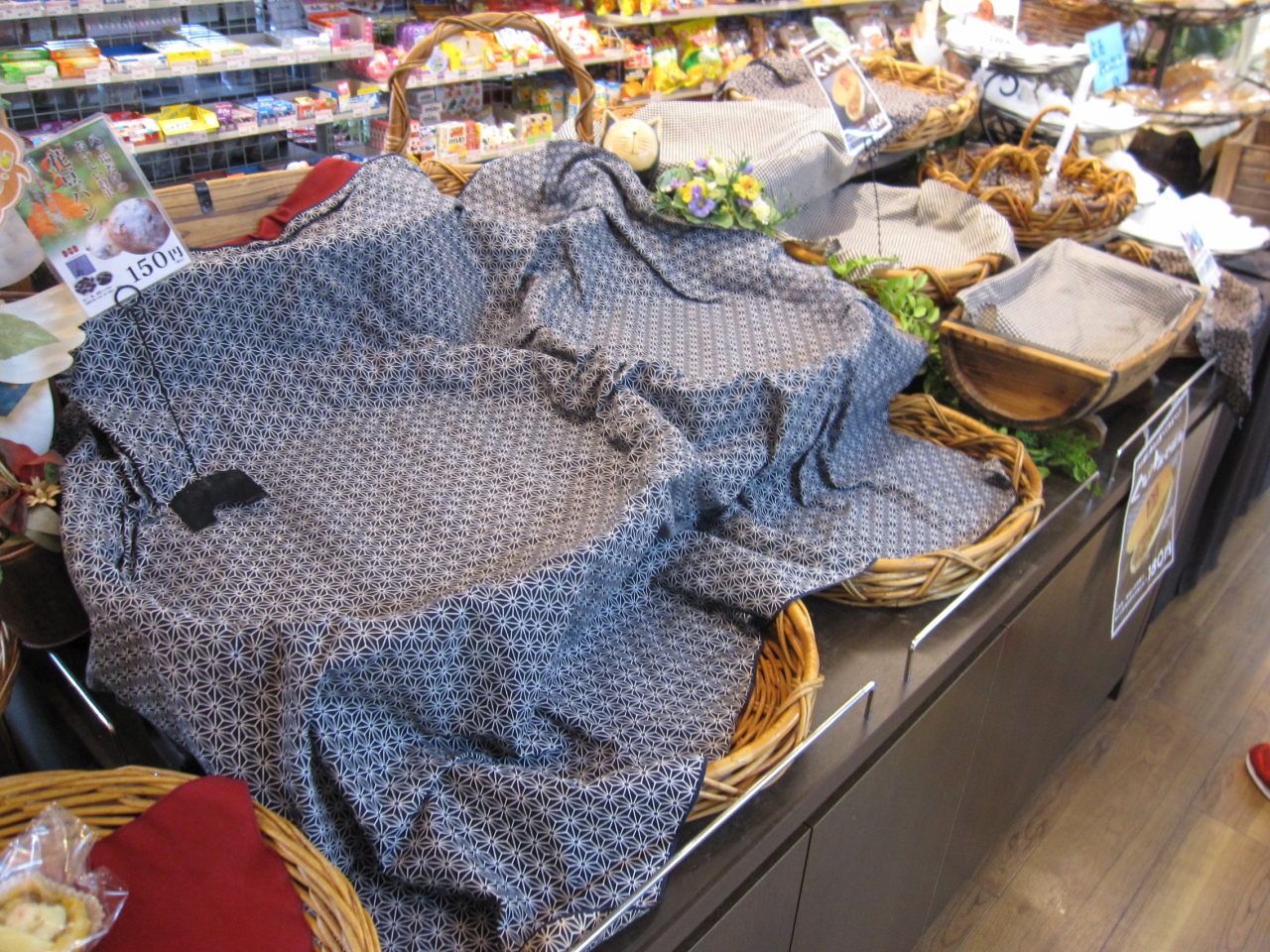店の前には信楽焼の大きなタヌキと年季が入った看板が建ち並び、店内は昔子供の頃に入った田舎のよろず屋さんの雰囲気があり、商品の陳列の仕方にも懐かしく思いました。