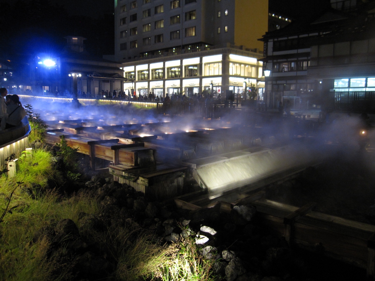 宿泊先「草津ナウリゾートホテル」の無料シャトルバスを利用してライトアップされた湯畑を見学してきました。