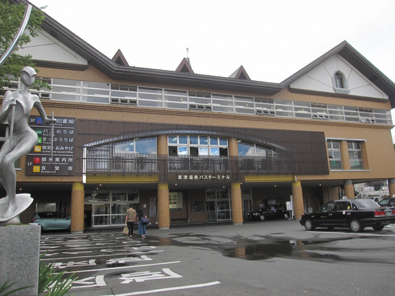 草津温泉熱の湯の「湯もみショー」見学のために観光バス駐車場として利用したローカルバスのバスターミナルです。