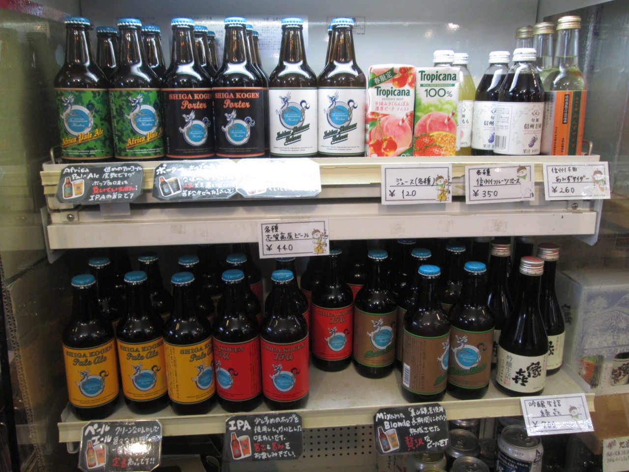 ここで見慣れないビールを発見、それも数種類あってラベルは全てアルファベット表示。外国製かと思えば「志賀高原ビール」。