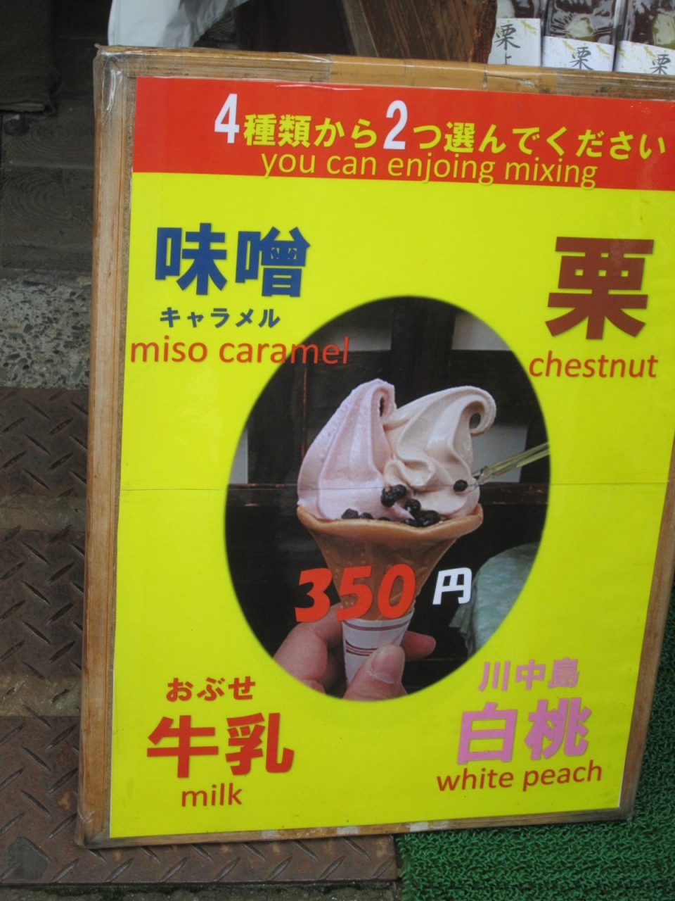 ソフトクリームが目当てらしいが、そればかりか店主のパフォーマンスも面白く、高校生位の男子学生が大はしゃぎ。