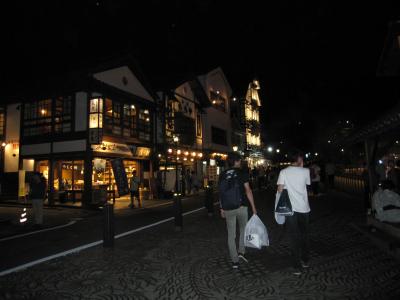 というのも以前テレビ番組で、惜しみもなく観光客に試食をふるまっているのを見て、皆さん好評だったからで、湯畑のライトアップを見学した後の夜の8時半過ぎに店を覗きました。