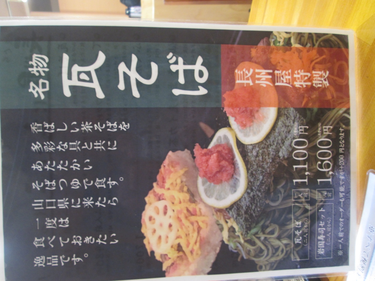 瓦そばは一人前が1,100円で、二人前からでなければ注文に応じず、岩国すしは一人前500円です。