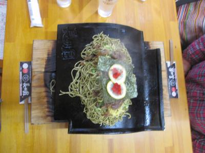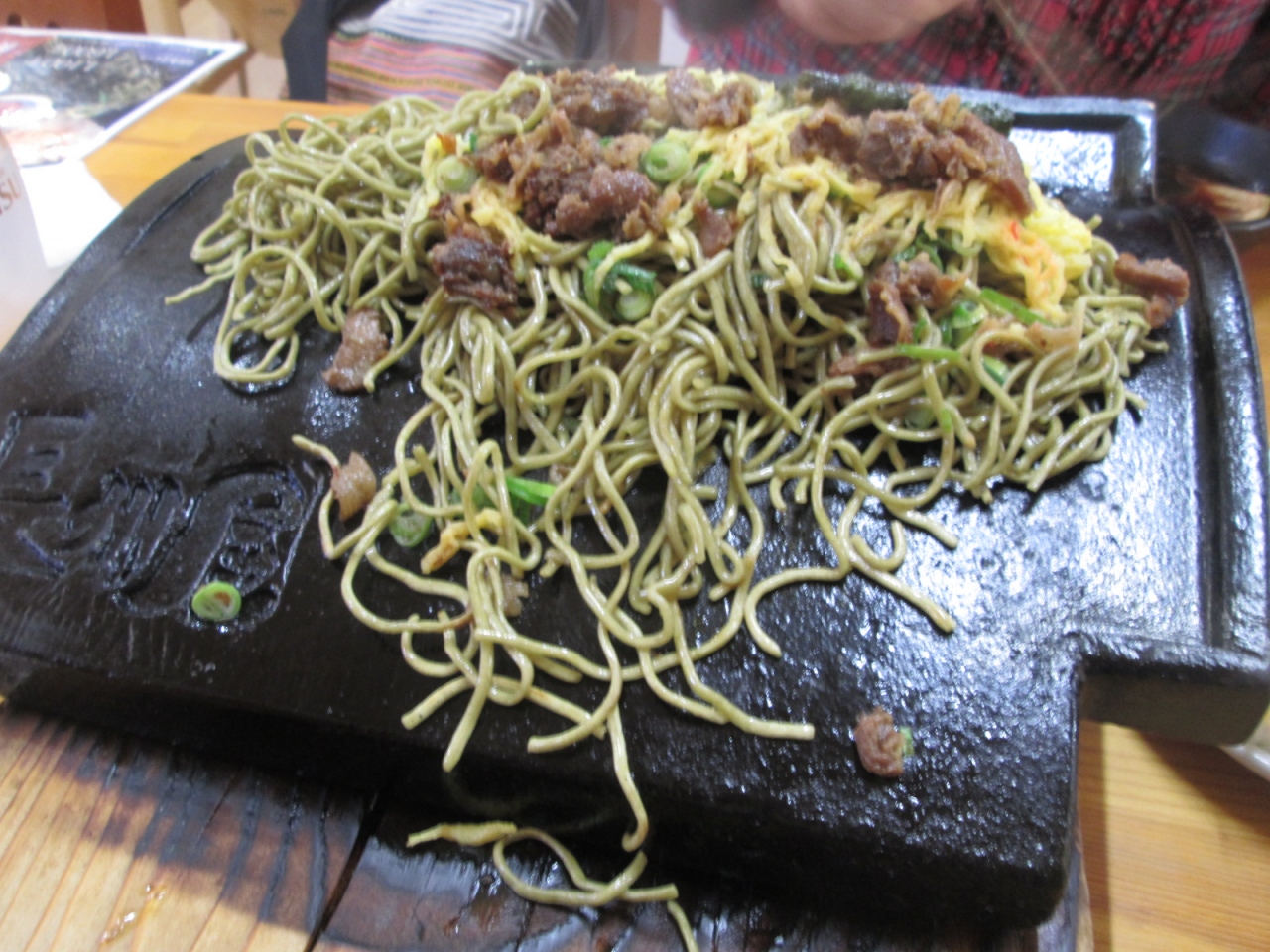 瓦そばは、そばつゆで頂く焼きそばのようなもので、甘めのそばつゆに薬味のレモンと紅葉下ろしを加えて、若干味付けされた牛焼肉、まぶされたネギ、錦糸卵と一緒に頂く美味しいおそばでした。