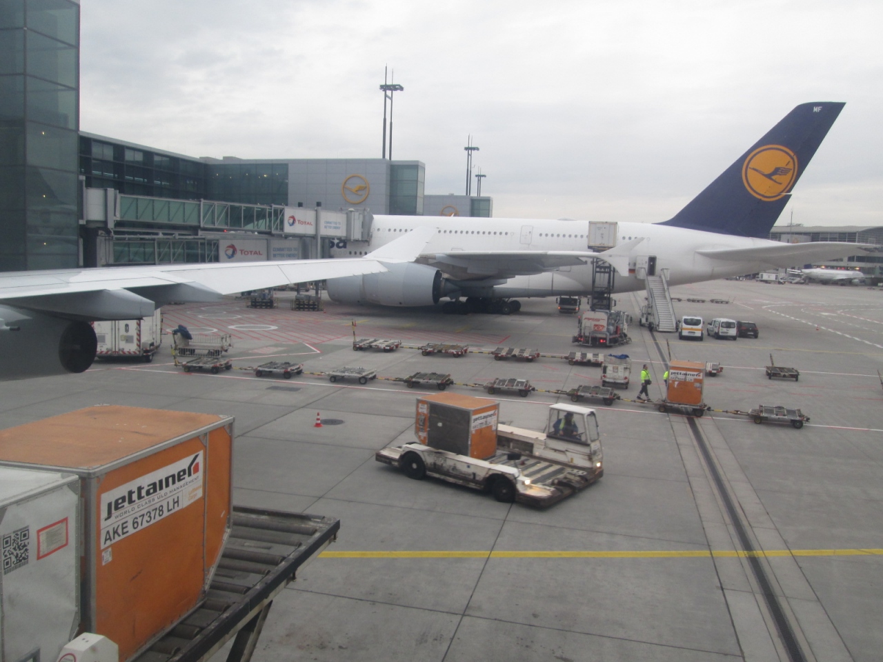 フランクフルト空港で機材の変更により約2時間遅れて出発。