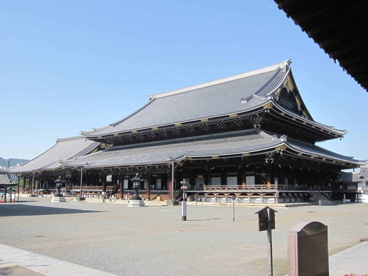 御影堂は、境内のほぼ中心に位置する明治期に再建された瓦葺きの単層建築で、建築面積において世界最大の木造建築物とのことで、平成16年から平成21年にかけて大規模修復が行われたそうです。