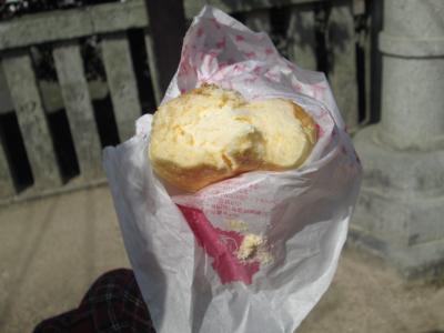 私達もそのくりーむパンが気になり列に参加して1個280円の八天堂くりーむパンを購入。