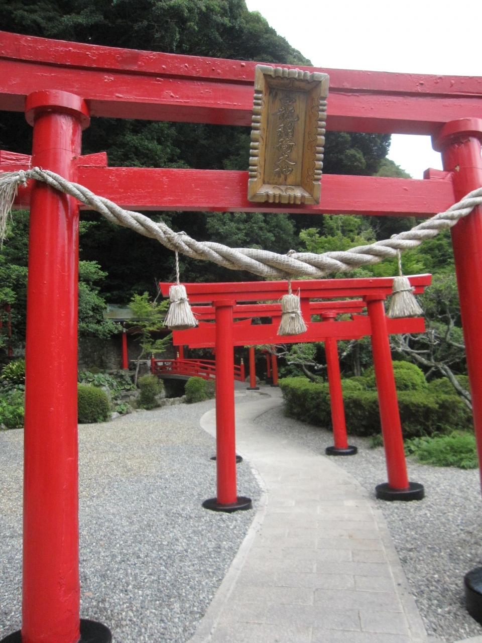 大鳥居の先の境内は、まず長い朱塗りの「御神橋」があり、これを渡って拝殿に向かいます。