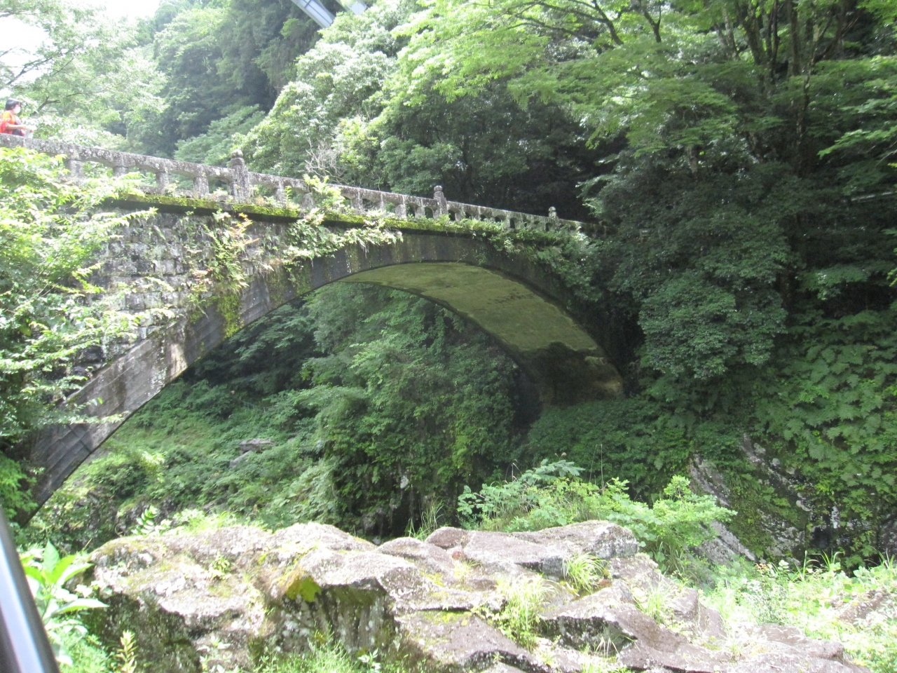 高千穂神社から、高千穂峡でひときわ美しい「真名井の滝」近くの渓谷に架かる「御橋」まで歩いてやって来ました。