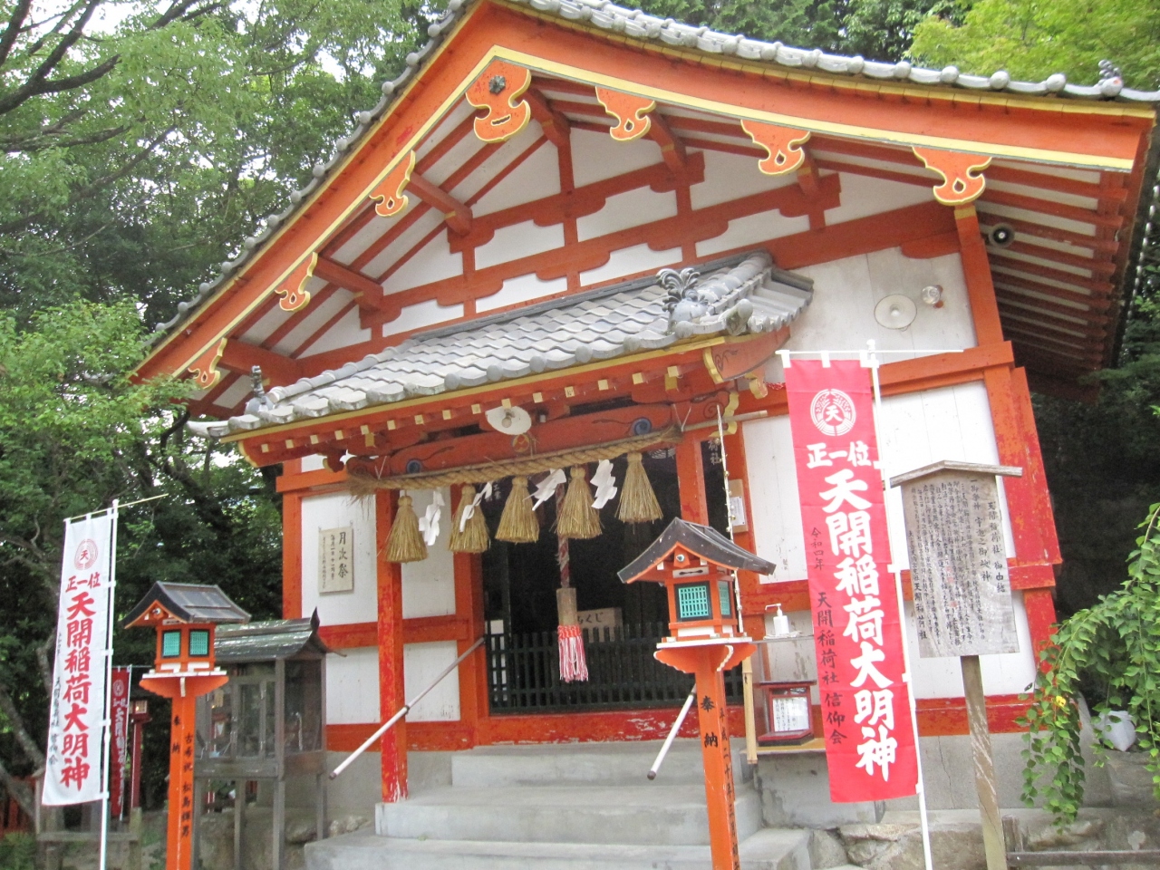 境内奥にある小道を山の方へ進むと、九州最古の稲荷神社とも言われる「天開稲荷」が見えてきます。