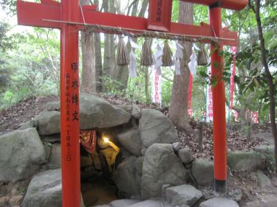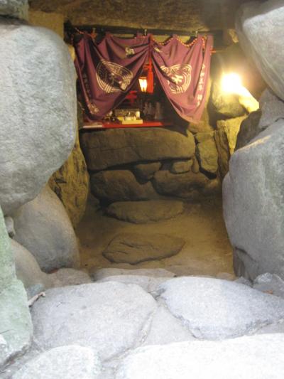 参拝後、社の左端に鳥居と階段が見え、ここの階段を登ると出てきたのは「奥の院」という石室でした。