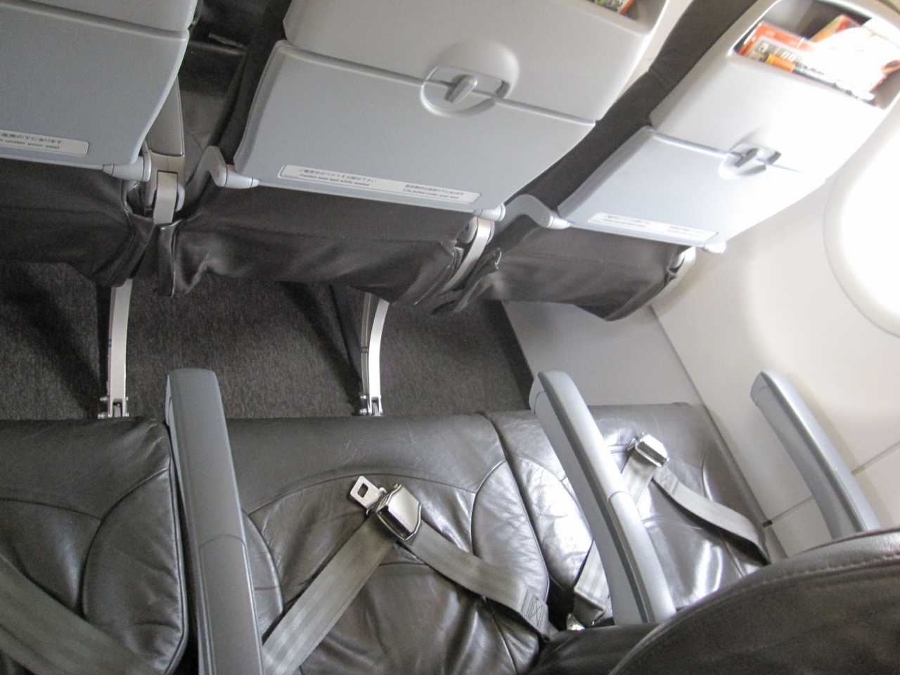 シートは狭く、トイレに行く時は通路側の人に一旦立って貰わないと出れない程です。