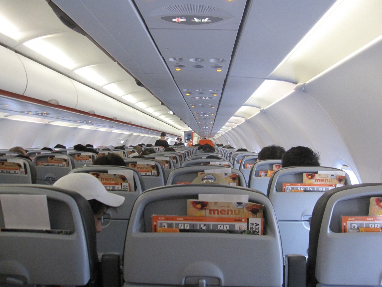 機内は、ジェットスターのテーマ色のオレンジ色がデザインされ、シートは黒色の皮っぽい材質。