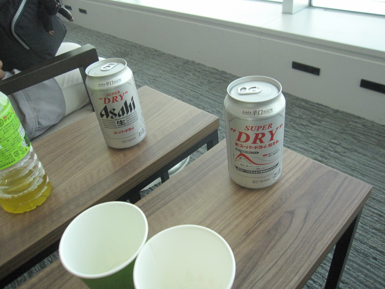 福岡空港のラウンジは、とても広くフリーソフトドリンクまたは缶ビール1本が頂けます。