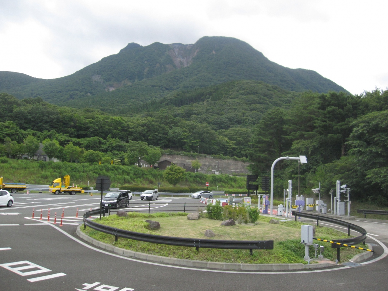 ここはトイレと清涼飲料水の自動販売機のみが設置された、無人のパーキングエリアですが、広々とした緑地と、間近に見える由布岳等の山々の景観がきれいです。- 旅行時期
