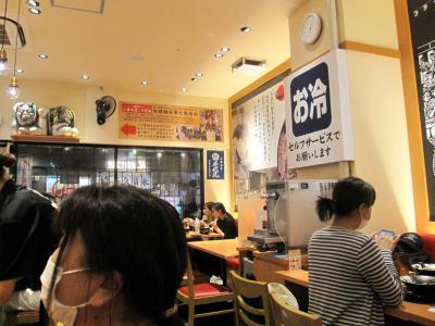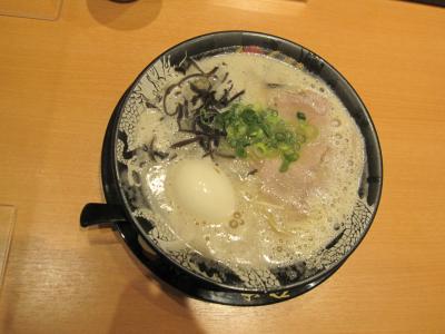 飛行機搭乗のチェックインを済ませたお昼過ぎ、昼食場所を探して2~3階のレストラン街をフラフラして、繁盛していた3階のラーメン滑走路街の「博多一幸舎」に決定。