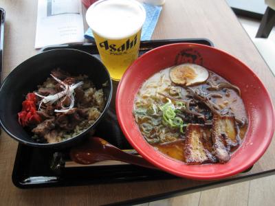 駅構内のレストラン街や隣の「AMUプラザ」のレストラン街には、期待していたご当地料理の店が見あたらず、「AMUプラザ」のフードコートで、美味しそうなラーメン店を発見。