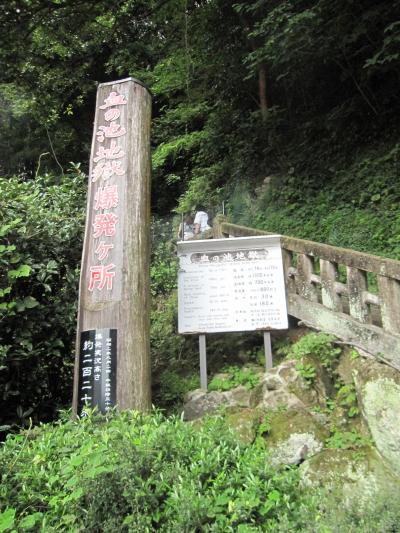 説明によると、噴出時は無色透明のお湯が、時間が経つにつれ温度や圧力の低下で青白く変色し、夏場には緑色に変色することもある不思議な池とのこと。
