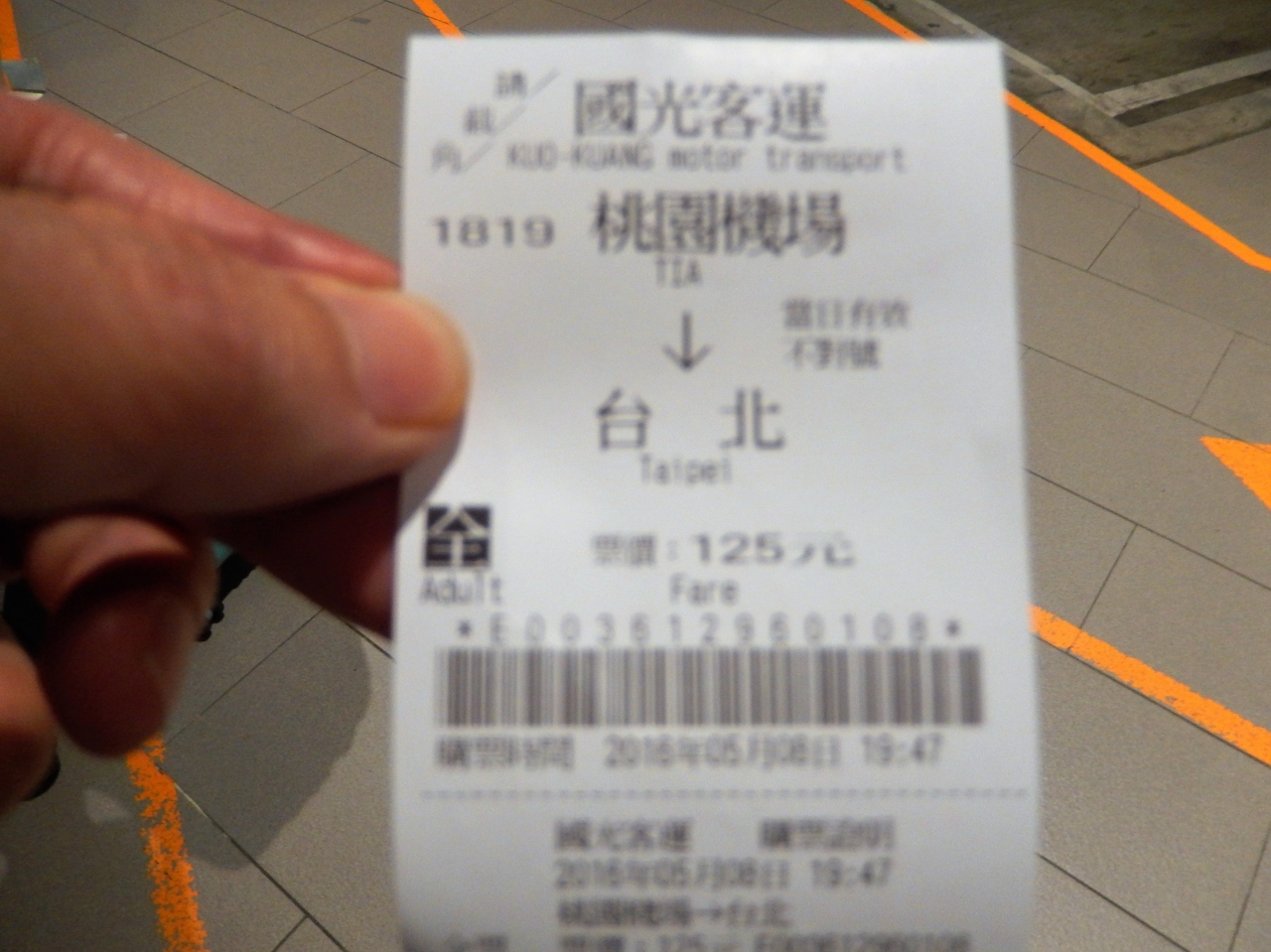 第1ターミナルに到着して1階のバス乗り場から國光客運のバスで台北駅まで向かいました。
