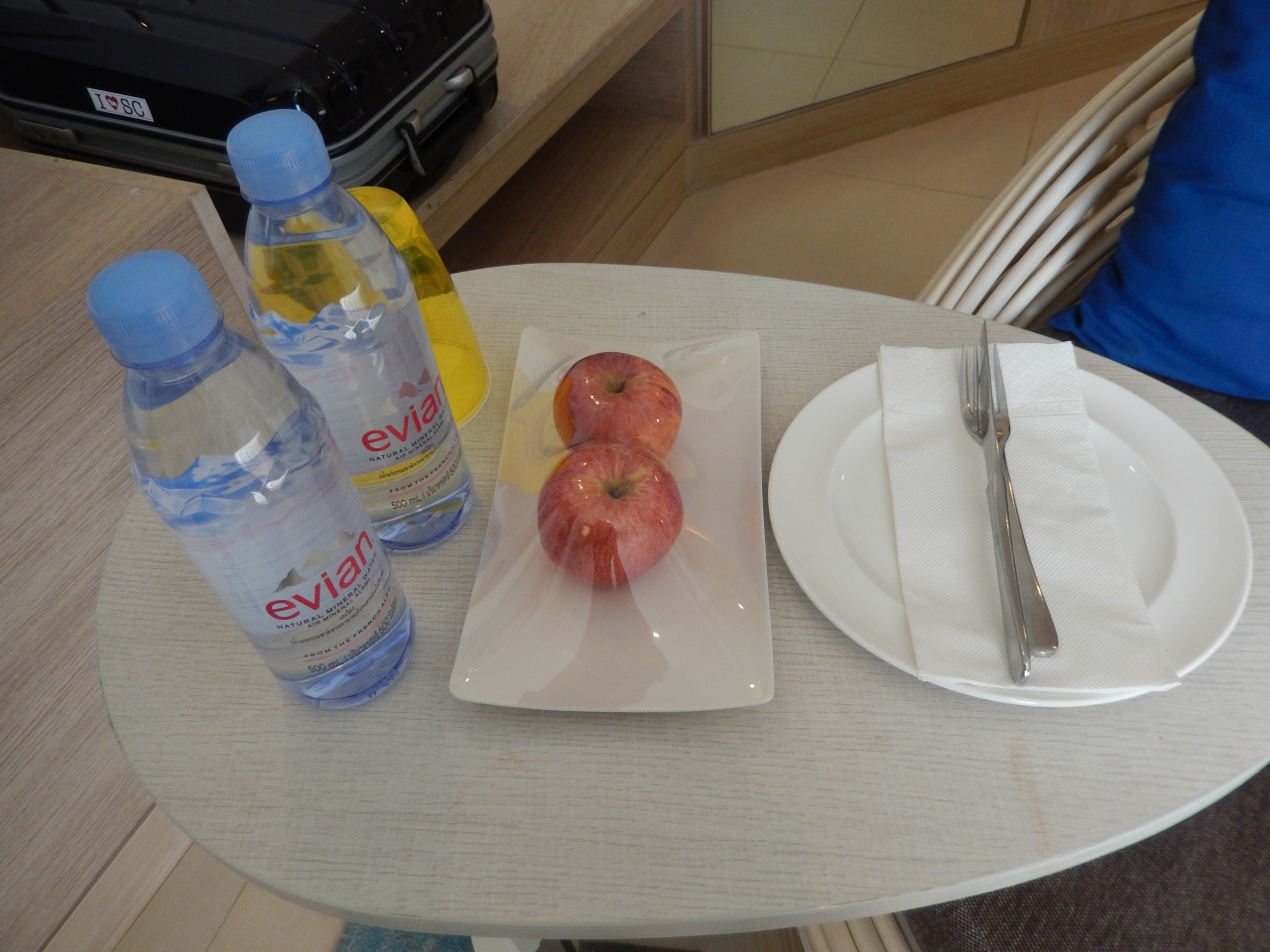 室内にはウエルカムフルーツとエビアン2本が置いてあり併せてウエルカムドリンクのチケットも頂きました。