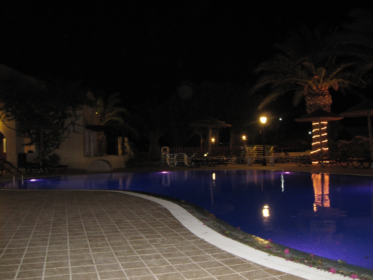 いわゆるサントリーニの『白と青』の建物ではないですが、プール有りの可愛いホテルで