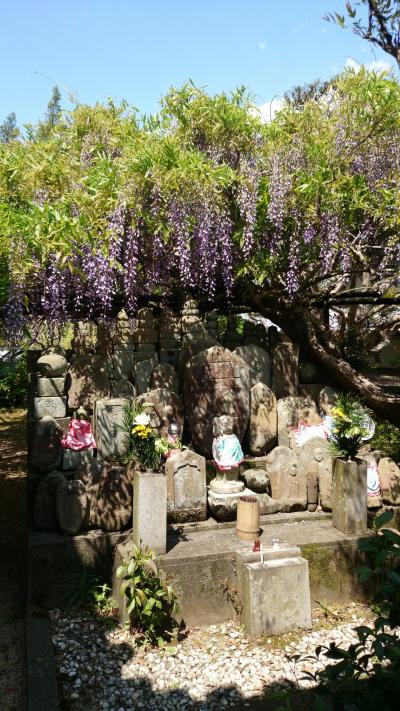 お寺の入り口手前には、藤棚とムスカリの花がお出迎え!