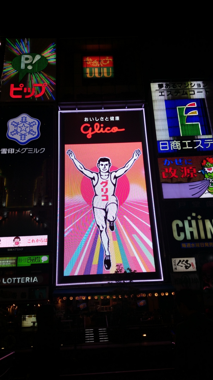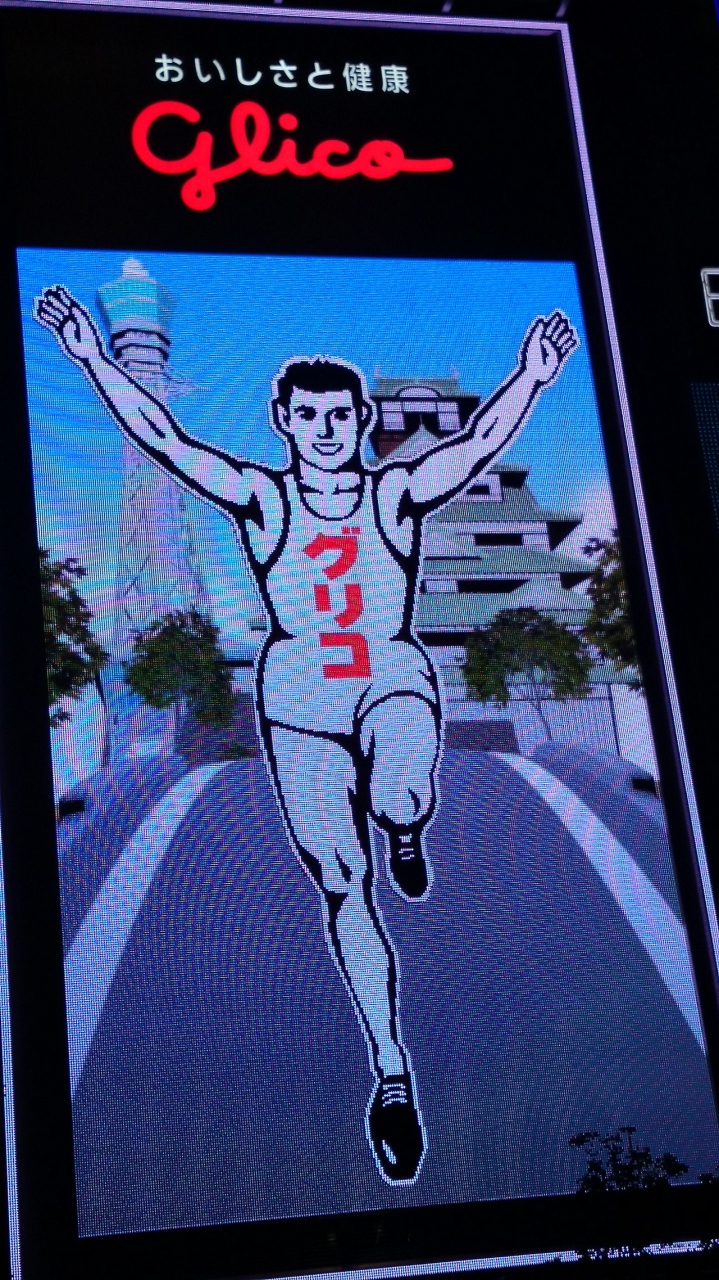 早速、新しくなったグリコの看板を見に行って来ました。LETと言うことでクッキリ ハッキリ 綺麗で見やすいです。ただ、スマホの写メでは綺麗に撮れなくてご免なさいm(__)m 通天閣のバック画面を見たくて一時間待ちました。なんだか昭和の雰囲気が無くなったのが残念です。