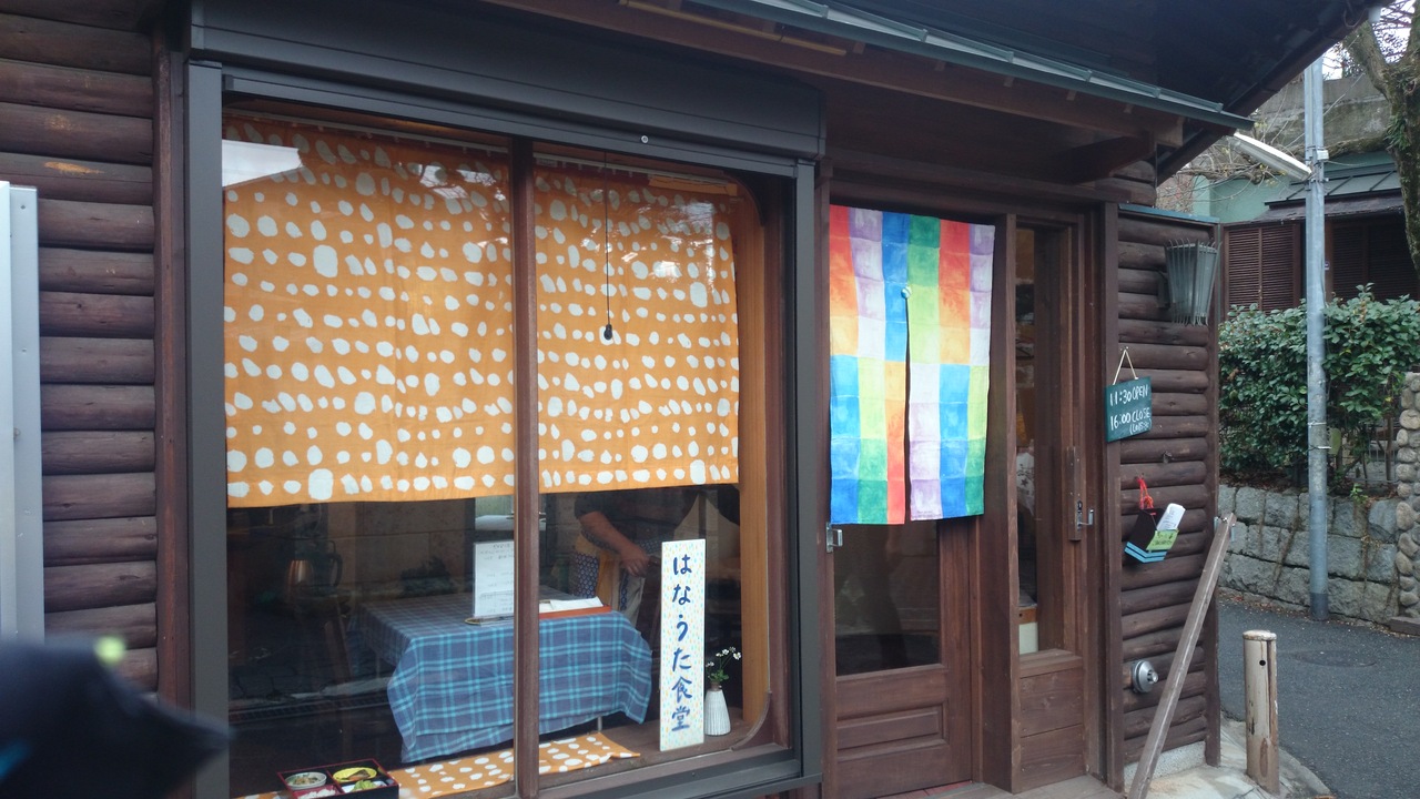そのお店は、日曜日だけ営業する″はなうた食堂″。駅から徒歩五分でイズミヤに行く途中にあり、一風変わった可愛らしいお店です。傍には石川が流れ、何故だかとても懐かしいような それでいて今風のエッセンスも加わり和風モダンて言うんでしょうか すごく落ち着きました。中は、テーブル席が3箇所にあり(そうそう昔のミシンも置いてありましたよ)スペース的には広くありませんが、手作りのランチ(¥800)と手作りのケーキセット(¥600)がとても美味しかったです(^^)メニューは、毎回変わるみたいですが、味付けと言いおかずの種類やボリュームも言うことなしで満足しました。この日のデザートは、ごぼうのガトーショコラケーキ・思い付かないような素材が出会ったケーキに感心!お値段以上の味でした(^_^)v お姉さんとそのお母さんで営業されてるみたいでしたが、小さな子連れで訪れた私達にも快く応じてくれて、とても親切にして下さいました。ママ友の若い世代や私と同年代の○十代の熟女にもお薦めです。一度、訪れてみて下さい(#^.^#)写真のランチには具沢山のかきたま汁が付いてます。