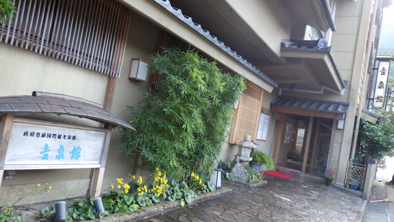 旅館紀の国屋甚八は温泉が二つあり共に板張りで素敵です。食事もカモ肉がメインの鍋とお刺身、アユの塩焼き等美味しく頂きました。- 旅行時期