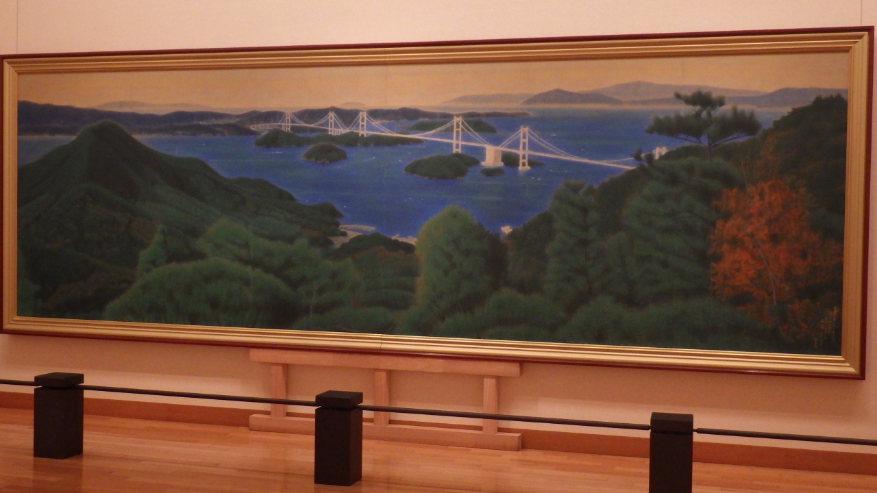 しまなみ海道を尾道から今治まで、自転車で毎年走っていますが、生口島はただの通過地でしたが、今年は観光したくて一泊し瀬戸田地区を散策しました。平山郁夫美術館に入ります。門をくぐり手入れの行き届いた長いお庭を通り館内へ。少年時代の絵画から、しまなみ海道の絵画そしてシルクロードの大作まで3ブースに展示され、美術館では珍しく写真可でした。