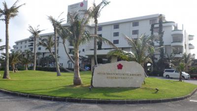 メインゲートを入りパターゴルフ場を横目に、でかいガジュマロと椰子の並木を通りトロピカルガーデンと称されている御池を眺めようやく大きなシーサーがお出迎えの正面玄関に。ホテル内は一般的な作りで、お部屋はテラスはあるものの狭い(広い部屋もあると思うが・・・・)。ホテル建屋からビーチへプールを横目に見ながら4~5分。綺麗な砂浜とコバルトブルーの海、来間大橋を左に見最高のロケーションである。